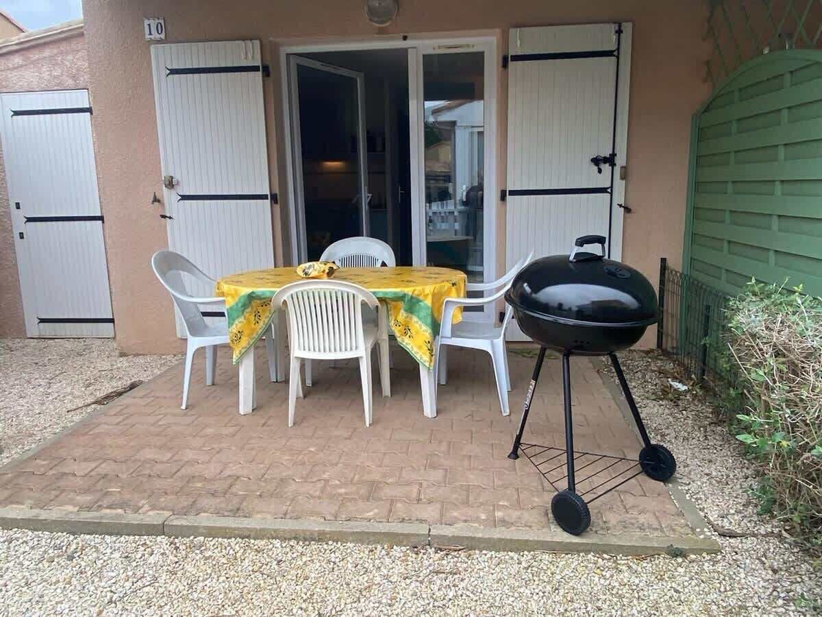Resort "Le Grand Bleu". 140 houses in the resort. 4 km from the centre of Valras, 800 m from the sea. For shared use: property, beautiful garden with plants and flowers, swimming pool fenced (60 m2, seasonal availability: 15.Jun. - 15.Sep.). Children's pool. In the complex: reception, washing machine, tumble dryer (for shared use, extra). Parking on the premises. Bakery 50 m, sandy beach 800 m. The photo is just an example. The holiday properties may differ in living space, floorplan, equipment and furnishing.