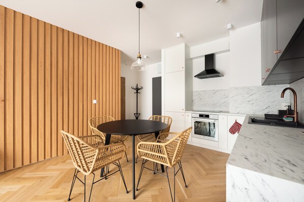 ナショナル スタジアムから 3 km 圏内のアパートメントを備えたキッチン
