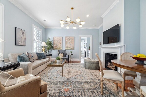 Welcome to a gem of an apartment conveniently located in a historic mansion in Downtown Wilmington! This apartment is walkable to everything downtown has to offer and comes with a designated off street parking spot. From the paint colors, to the linens, tile, fixtures and furniture, everything is new and cultivated specifically for the space, with no expense spared. Two sleep comfortably and have plenty of space in this 1 bed, 2 bath stunner with full kitchen and living room.