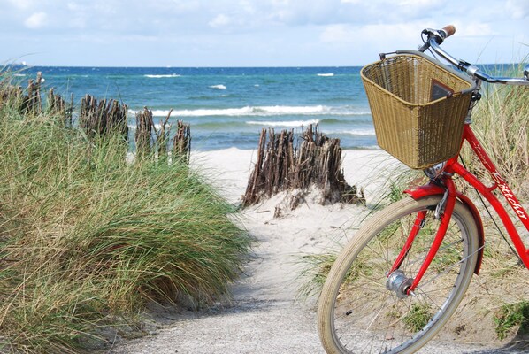 Zwischen weitläufigen Feldern und Wiesen fühlt man sich einfach wohl. Die Unterkunft lässt nichts vermissen und der Weg zum Strand ist schon ein Idyll.