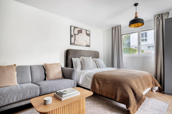 Located in Zurich's charming District 3, this roomy Wiedikon furnished studio apartment offers a modern decor and exquisite living room with great balcony views. Inside, you'll find gorgeous furniture, a fully-equipped kitchen with smart TV and premium wireless speaker to unwind. Enjoy on-site amenities like an elevator and laundry facilities.