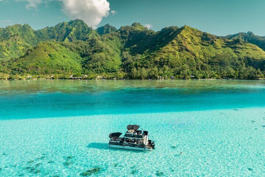 豪華な水上ラウンジに乗ってラグーンを巡るツアー。