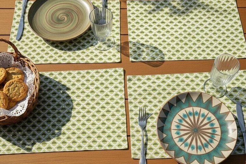 プレイスマット: 丈夫なリネン綿のランチョンマット(14インチ×20インチ)4枚入り。 ワークショップの最後にお持ち帰りください!
