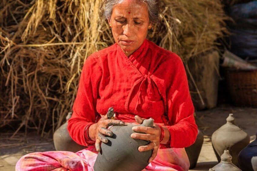 眺めを楽しんだ後は、美しく保存された寺院や宮殿、伝統的なネワリ建築で知られるユネスコ世界遺産のバクタプル・ダルバール広場へと進みます。 レンガ敷きの中庭を歩くと、まるでタイムスリップした気分に。 知識豊富なガイドと一緒に、この古代都市をユニークなものにしている芸術、文化、歴史についてより深く知ることができます。