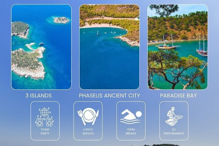 Medusa 3 Islands Boat Tour from Kemer Foam Party and Free Lunch