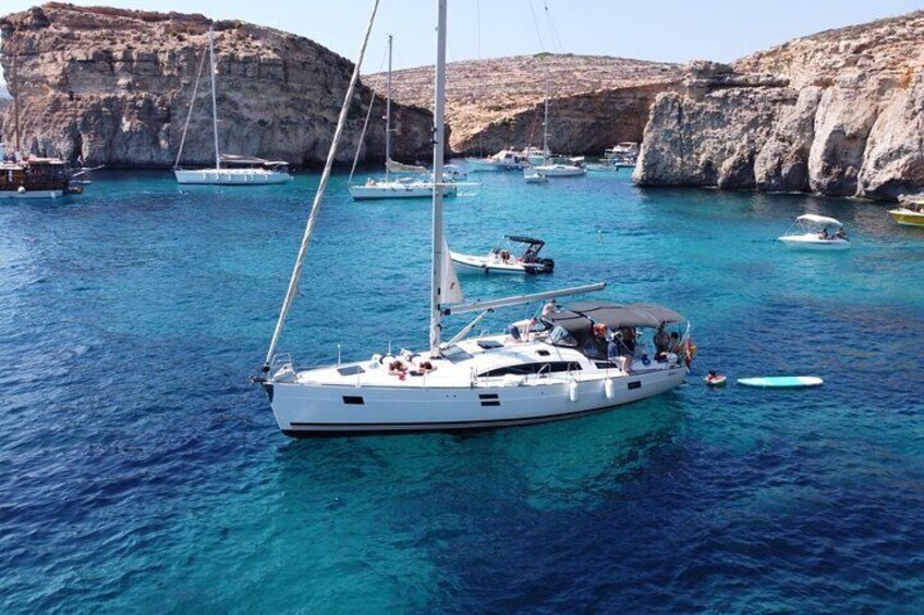 モーグリに乗って航海: このセーリングヨットでのプライベートツアーを楽しみ、マルタで最も人里離れた湾を訪れて忘れられない体験をしましょう。