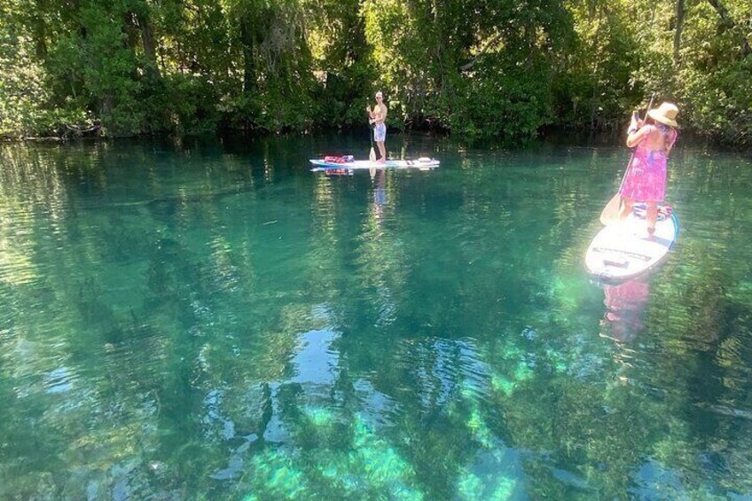 風や流れに逆らってパドリングするときに苦労する必要はもうありません。当社の電動パドルボードを使えば、レインボー スプリングスの素晴らしい水を眺めるために上流に簡単に遡ることができます。レンタル期間は 2 時間で、上流の泉までクルーズして探検し、その後下流に戻って冒険することができます。レインボー スプリングスには、透き通った水と、カワウソ、魚、その他多くの種などの野生動物がたくさんいます。