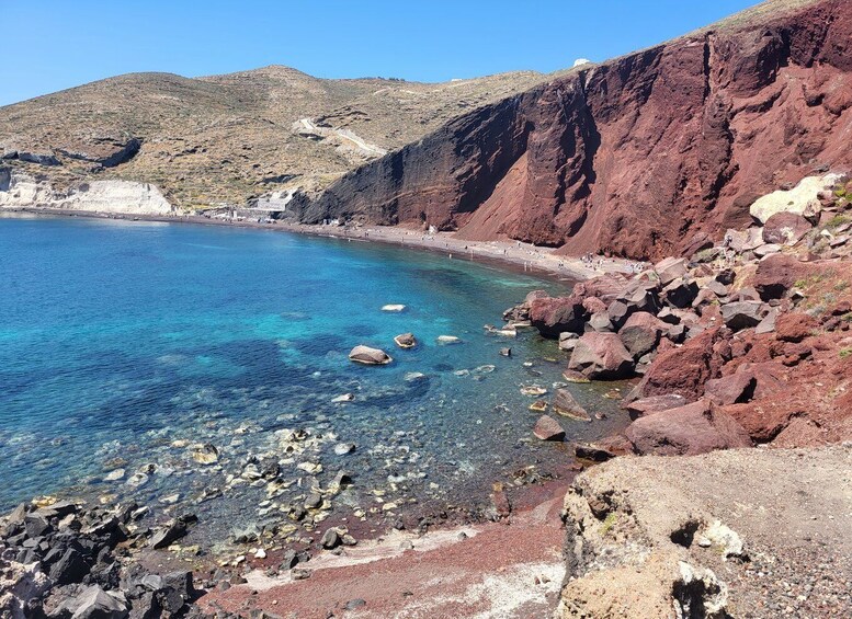 Red Beach – majestic red rock formations next to blue waters