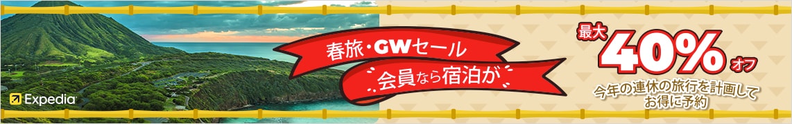 ※割引額は、すべての割引とリワードが適用される前の、航空券 + ホテルのセット料金と、航空券とホテルを個別に予約した場合の料金との比較に基づきます。セット予約の割引額は、最大で航空券全額に相当します。割引額は、出発地 / 目的地、宿泊数、宿泊期間、旅行サービス業者によって変動します。すべての航空券 + ホテルのセット予約に割引が適用されるわけではありません。