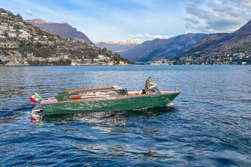 コモ湖のクラシックな木造船でのプライベートツアー