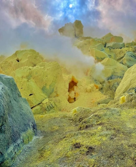 Up-Close Encounters: Get up close and personal with active sulfur vents, we will start the exploration walking 4 km total inside of the caldera of the volcano, allowing you to witness the raw power and beauty of nature's forces.
