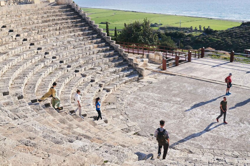 Continuing along the coast, you will arrive at the impressive Kourion Archaeological Park, one of the most important ancient sites in Cyprus. Here you will explore the remains of a once-powerful Greco-Roman city overlooking the Mediterranean. Walk through the Roman baths and admire the spectacular amphitheatre, which is still used today for concerts and cultural events thanks to its remarkable acoustics and breathtaking setting.