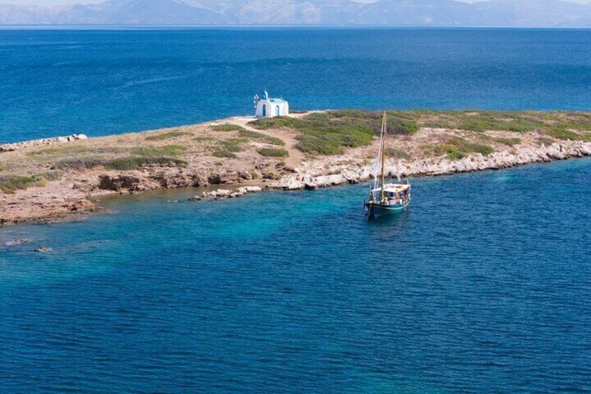 Church Island (St. Alexander Island) - Emerging like a white-cycladic jewel in the blue waters of the bay, this tiny island is topped with a charming chapel and a whimsical old windmill – purely postcard-perfect. Legend says the church was built overnight by locals to protect the view from development, giving the spot extra storybook appeal......