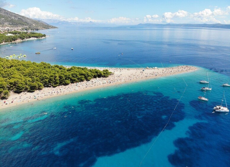 You will have three hours of free time to explore town Bol and his famous beach Zlatni rat (Golden Horn). It takes 20 min walking to this stunning beach surrounded by pine trees. Make sure you remember the image of the beach because next time you see it, it will not be the same. Its appearance moves depending on the direction of the wind and waves.