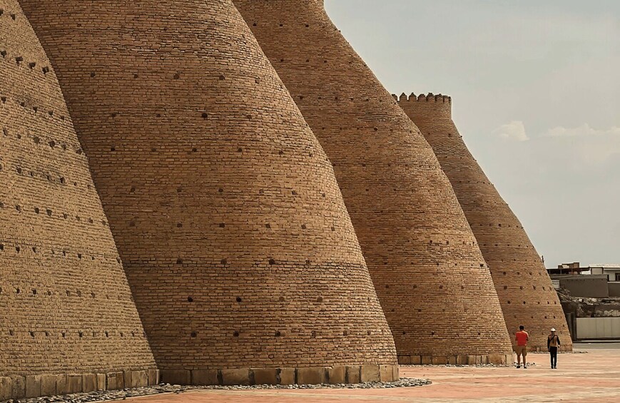 Start your walking sightseeing tour in Bukhara. Visit Lyabi-Khauz Complex (a lively square with a pool, old madrasahs, and shady trees, a favorite meeting spot), Magoki-Attori Mosque (one of Bukhara’s oldest mosques, partly underground, with pre-Islamic layers of history), Chor-Minor Madrasah (a small madrasa with four unique turquoise-domed towers, very photogenic), Trade domes (historic covered bazaars where silk, jewelry, and handicrafts were traded for centuries), Kalyan Minaret (a 47 m tower from the 12th century, spared by Genghis Khan, symbol of Bukhara), Kalyan Mosque (huge mosque with a vast courtyard, able to hold up to 10,000 worshippers), and Miri-Arab Madrasah (a still-functioning Islamic school, famous for its grand blue-tiled façade), Ulugbek and Abdulazizkhan madrasahs (side by side: Ulugbek’s simple elegance and Abdulazizkhan’s ornate design), Ark Fortress (former residence of Bukhara’s emirs, with royal courts, halls, and museums inside), and Bolo-Khauz Mosque (a mosque with carved wooden columns reflected in a pool, opposite the Ark). End of the tour.