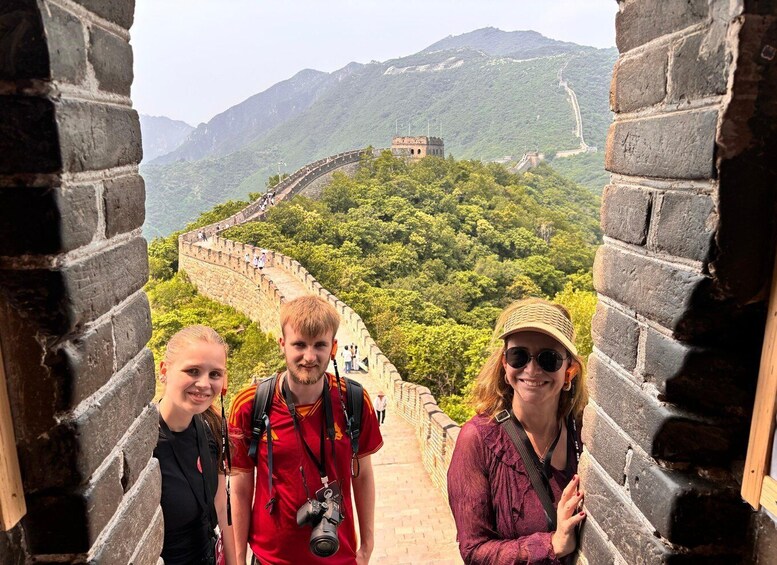 15:00:慕田峪長城に到着、MUBUSビジターセンターでチケットを受け取ります。その後、遊覧シャトルバスで山を登り、万里の長城入口へ。この古代の驚異をガイド付きで探検し、生きた歴史的傑作に足を踏み入れてください。青々とした松やヒノキの森の息を呑むような景色に囲まれながら、世界最大の軍事工学の偉業の壮大さに驚嘆してください。万里の長城の美しさと歴史に浸る2時間半の自由時間をお楽しみください。