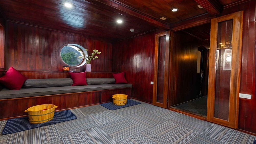 1 日は、午前 7 時 15 分頃にハノイ旧市街のホテルへのお迎えで始まり、約 2 時間半離れたハロン国際クルーズ港へ向かいます。港に到着したら、その日は豪華な木製ボートに乗って、ツアー チームの温かい歓迎を受けます。全員が乗船したら、バイトゥ ロン湾を通ってハロン湾の人里離れた地域に向けて出航し、周囲の岩の小島や島々の神秘的で魔法のような風景を眺めましょう。