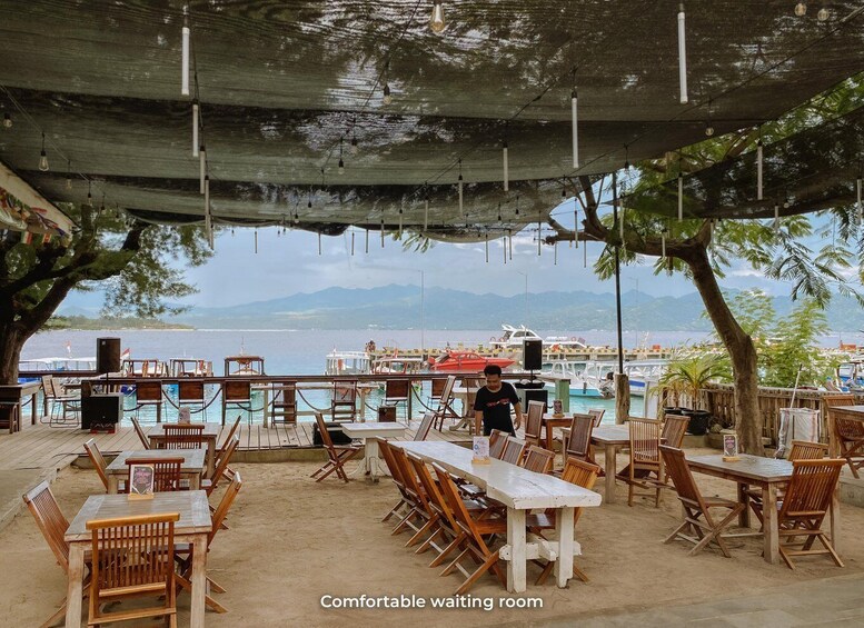Meet with staff at an easy-to-find bar in Gili Trawangan that is only 100 meters from the harbor. Get set up with snorkeling equipment and choose your fin size with the help of your instructor.