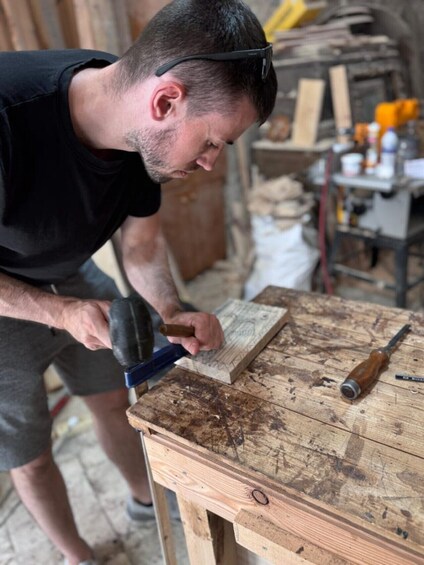 Cerciz Topulli広場でホストと合流した後、ヌルセ工房へ向かいます。(徒歩3分)まず、木材とその種類に慣れ、一般的な情報を得ます。何を作るかを決めたら、まず白い紙にデザインし、その後、巨匠ヴィクトール・ヌルチェの監視のもとで彫刻を始めます。仕事をしながら、お好みでラキアや自家製ワインを楽しむこともできます。