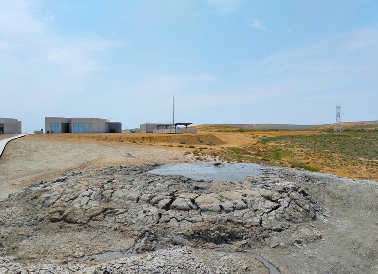The journey continues with 20 minutes driving to the Gobustan Mud Volcanoes, where over 50 geological formations dominate the surreal terrain. These mud volcanoes are formed as natural gas, primarily methane, rises through underground sediments, mixing with water and erupting as mud, creating conical mounds that evolve over time. The landscape is both scientifically fascinating and visually striking, perfect for observation and photography. Visitors spend around 30 minutes witnessing this rare geological phenomenon.