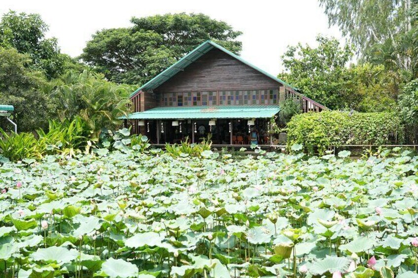クール リトリート 半日エアコン: プロによる屋外クッキングの興奮から、エアコン完備の涼しい快適なダイニングまで、自分で作ったタイ料理をご賞味ください。