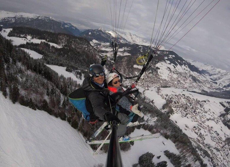 La Clusaz: Ski paragliding flight (discovery or thrill)