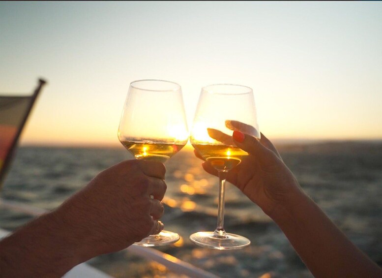 テージョ川での忘れられないイブニングクルーズを体験し、ポルトガルの暖かい夕暮れの中でリスボンのモニュメントの最高の眺めをお楽しみください。快適でモダンな船で快適なサンセットクルーズをお楽しみください。美しい海岸線沿いのリラックスした旅に出発すると、爽やかなウェルカムドリンクがお客様をお迎えします。
