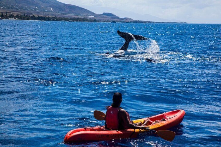 マウイ島の雄大なクジラを真のユニークな視点でお楽しみください!この3時間のカヤックとシュノーケルのエコ冒険ツアーは、ザトウクジラの観察に焦点を当て、家族全員にとって楽しいサンゴ礁のシュノーケルスポットを含みます。太平洋の穏やかで澄んだ海を泳いで、海に浮かんで、色とりどりの熱帯魚、グリーンシーカメなどの美しい珊瑚礁に沿ったシュノーケルを楽しみましょう。さらに、小さなグループサイズと認定ガイドは、思い出に残るご滞在をお約束します。