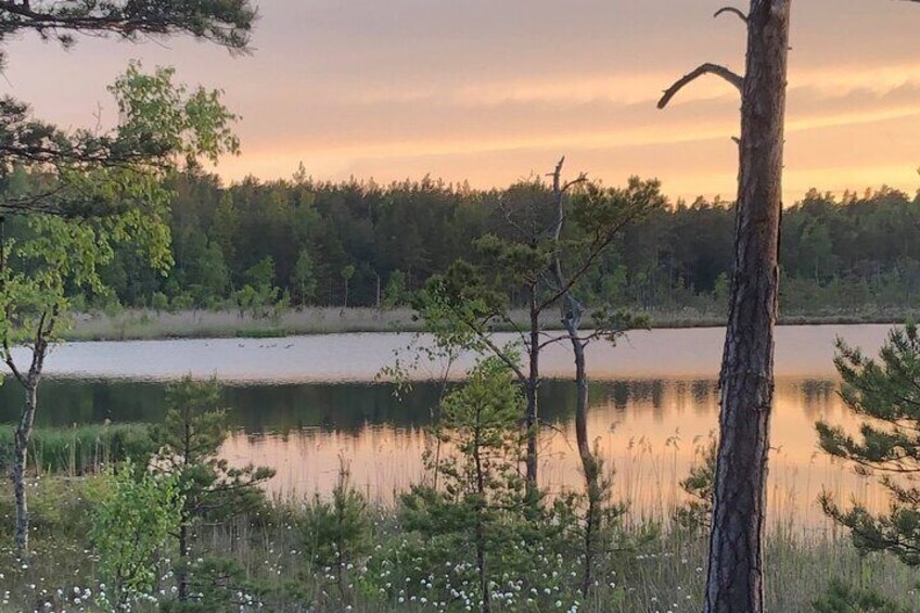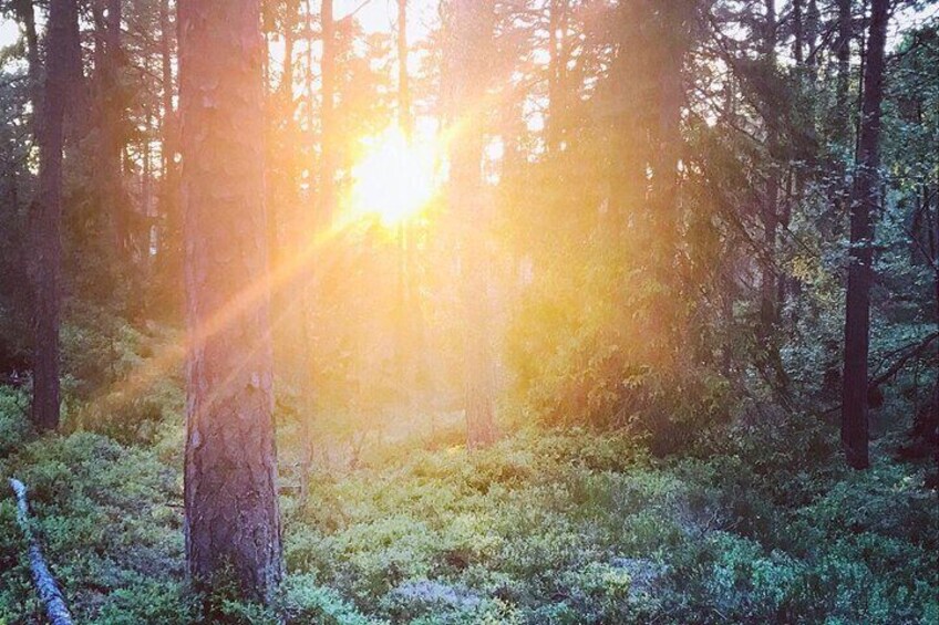 Midnight Sun and Campfire - National Park evening hike Stockholm