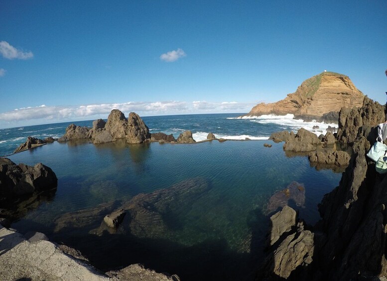 To finish our tour, we will drive to Porto Moniz to the natural volcanic pools, considered the ex-libris of the municipality. Of volcanic origin, formed over millennia by the cooling of lava, the natural physiognomy of these pools allows the entry of seawater. Time to grab your snorkeling equipment and go for a swim.