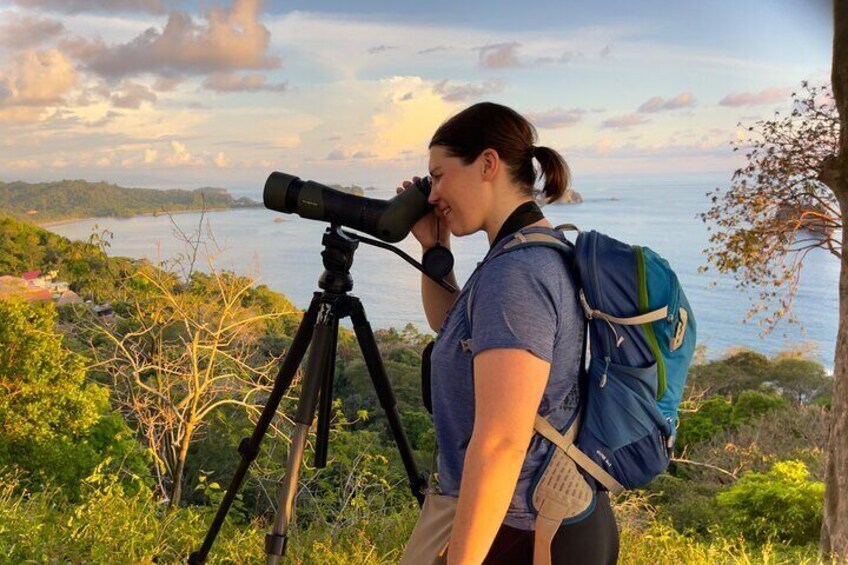 We hike uphill through a lush jungle in daylight and look for different animals such as toucans, sloths, monkeys and various species of birds. At the top of the hill you are treated with a wonderful view of the ocean, the jungle and the sunset (weather permitting). Afterwards we walk down the hill looking for nocturnal wildlife. The area we discover is a private reserve so this an exclusive adventure.
