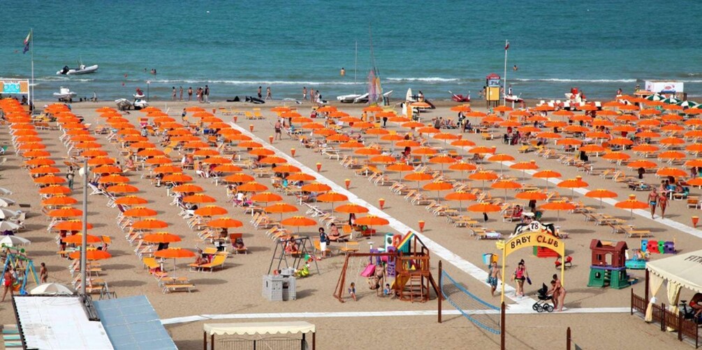 アドリア海の真珠」と呼ばれるリミニを訪れ、46バッティギアビーチで日光浴を楽しんでみてはいかがでしょうか。ビーチではサンベッドと、日差しを遮るためのビーチパラソルをお楽しみいただけます。ビーチで遊ぶ人たちを眺めながら、アペリティフを飲むのもいい。リミニは、イタリアで最も設備の整ったビーチを誇り、150年の歴史を持つホスピタリティ溢れる街です。