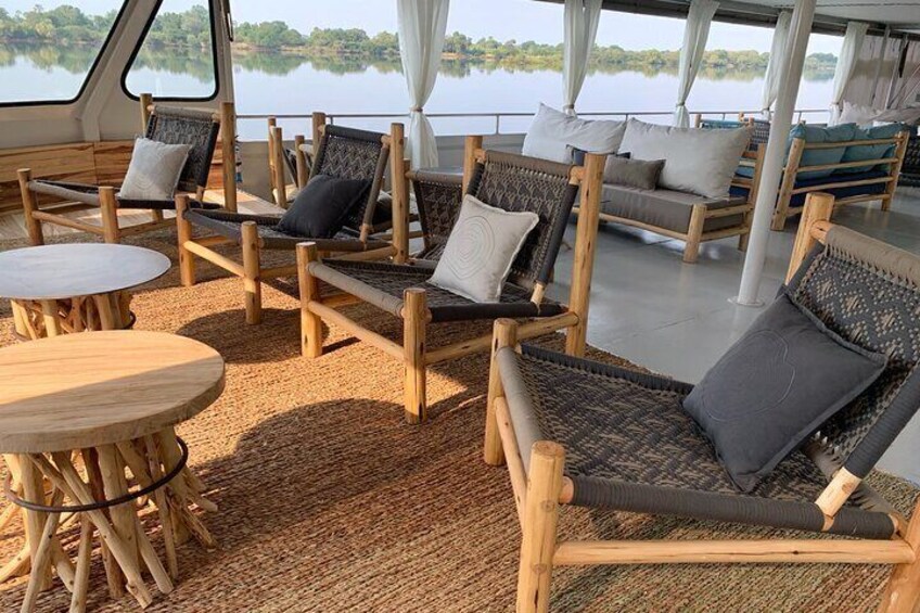 ザンベジ川を周遊するサンセット・クルーズでゆったりとおくつろぎください。カクテルを傾けながら野生動物を観察しましょう。
