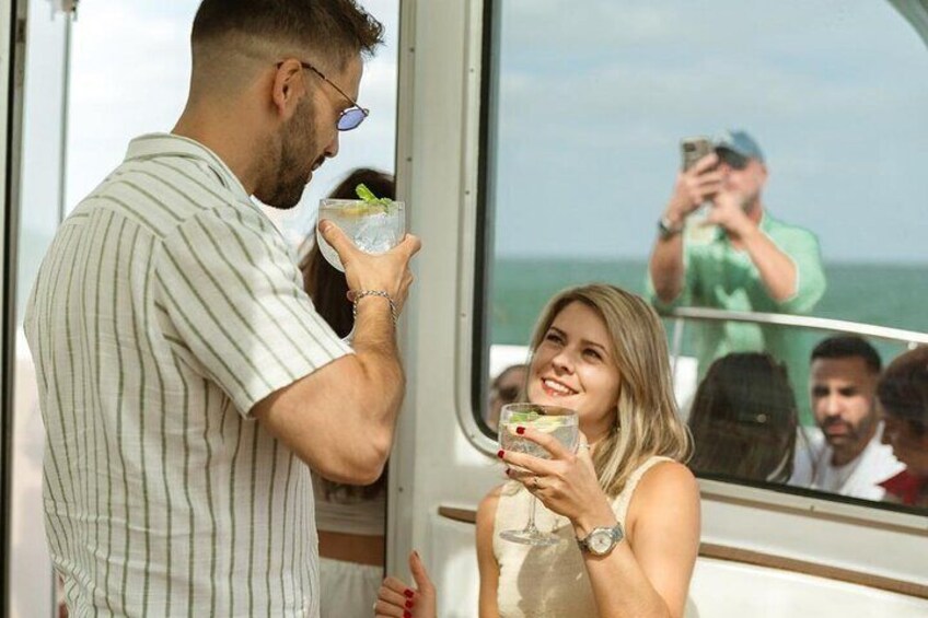 豪華なボートでのDJパーティー、オープンバーと軽食、サンセット