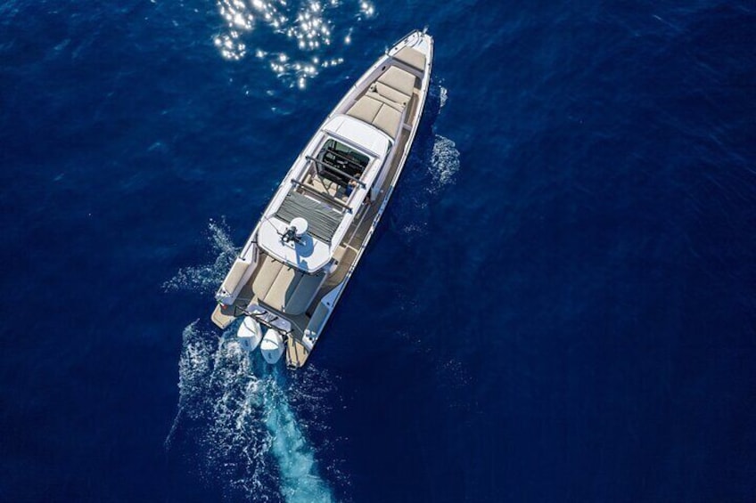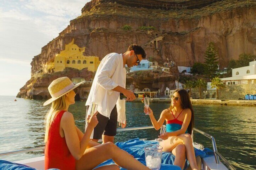 サントリーニ島の楽園:究極のプライベート モーター ヨット クルーズ