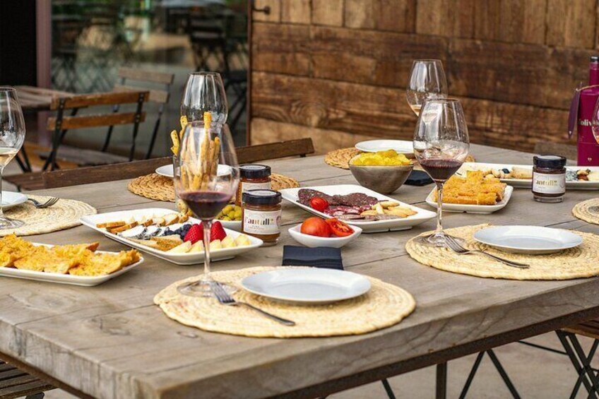チップス、オリーブ、シャルキュトリーボード、チーズ盛り合わせ、トマトとオリーブオイルの伝統的なパンなど、地元の前菜を加えて、さらに思い出に残る体験をお楽しみください。