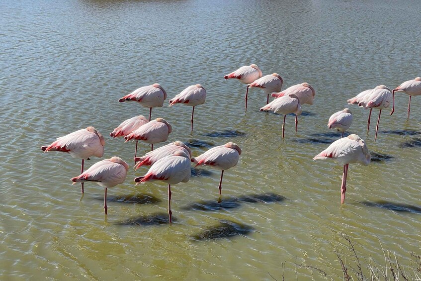 Take a break in Saintes Maries de la Mer to discover its church with the statue of Saint Sara, the Black Virgin. This will also be an opportunity for you to have lunch in a traditional restaurant (not included in the price) or enjoy a picnic on the beach (picnic not included in the price).