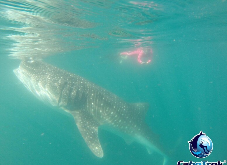 半日ツアーは早朝にカボサンルーカスから出発します。半島を2時間ほど進み、ラパス湾に到着。このユニークな湾は、毎年ジンベエザメが餌付けのために集まることで知られ、目を見張るような光景が見られます。